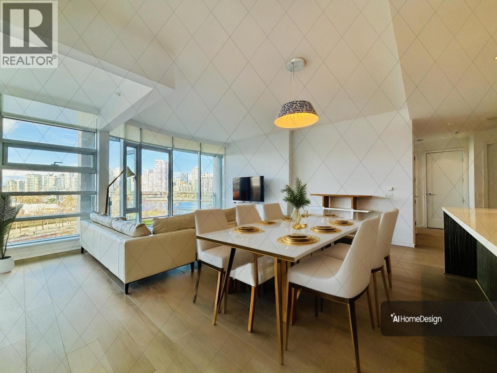 BREATHTAKING FALSE CREEK VIEWS - FURNISHED CORNER UNIT in "The Bridge". A stunning 3-bd, 2-bath corner unit that spans 1,429 sq. ft., wrapped in floor-to-ceiling windows that flood the space with natural light and showcase sweeping water, city, & mountain views. The modern kitchen is equipped with high-end Miele appliances, Egger Mann cabinetry from Germany, and sleek engineered hardwood floors. An expansive 439 sq. ft. terrace lets you soak in the scenery from sunrise to sunset. Nestled in the heart of Olympic Village, this LEED-certified home featuring geothermal heating and cooling systems for sustainable and comfortable living, TWO PREMIUM parking spots and access to the Gold Medallion Club with a state-of-the-art gym, pool, and spa. If you are interested, please contact for showing. (id:62931)