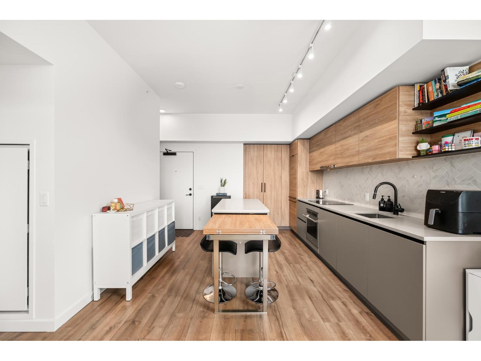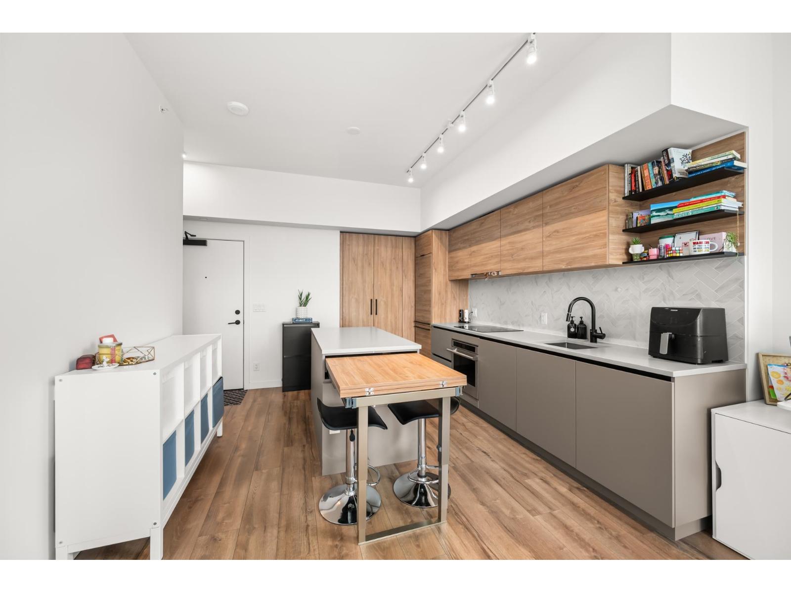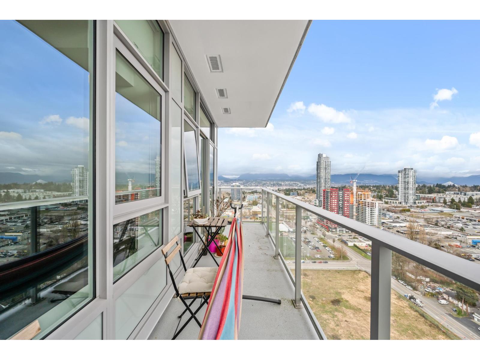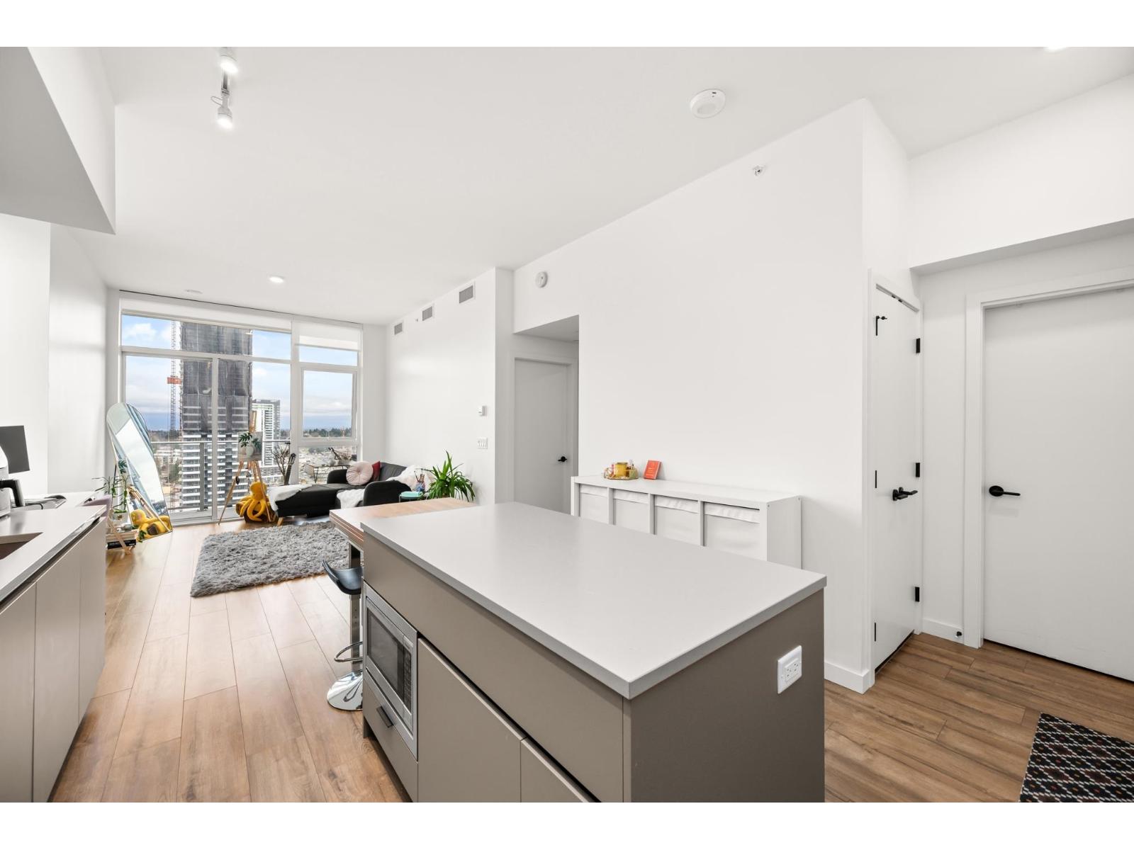 Welcome to University District North by Bosa! Stunning 1 bed+den, 1 bath corner unit on the TOP FLOOR offers 625sqft of bright, open-concept living with big windows, large balcony& breathtaking mountain & city views. Kitchen feat SS appliances, cooktop, built-in oven& extendable island-perfect for entertaining-plus built-in A/C for year-round comfort. Enjoy resort-style amenities including lounges, a gym, yoga studio, meeting rooms, playground, rooftop pool & party room with full kitchen & entertainment space. Centrally located to Central City, Walmart,Best Buy, Winners, SFU Surrey Campus,Chuck Bailey Recreation Centre & more! in catchment of K B Woodward Elementary & Kwantlen Park Secondary& short walk to Surrey Central Station with easy access to King George Blvd & Fraser Hwy. Call now! (id:62931)