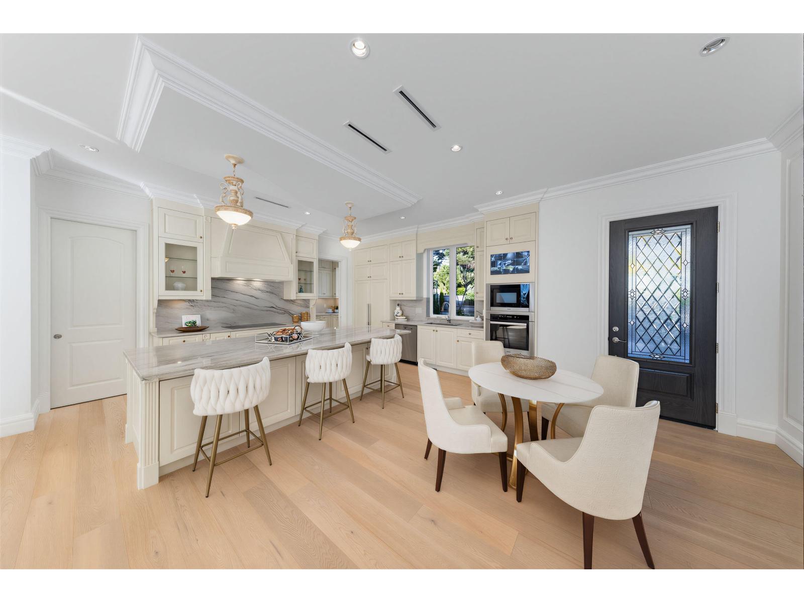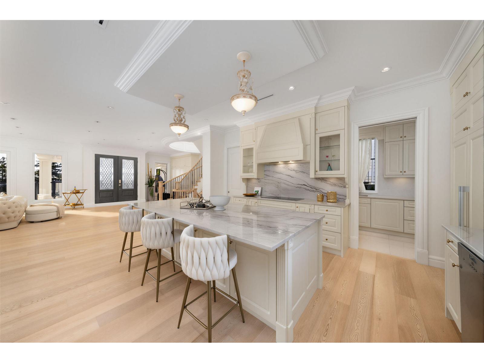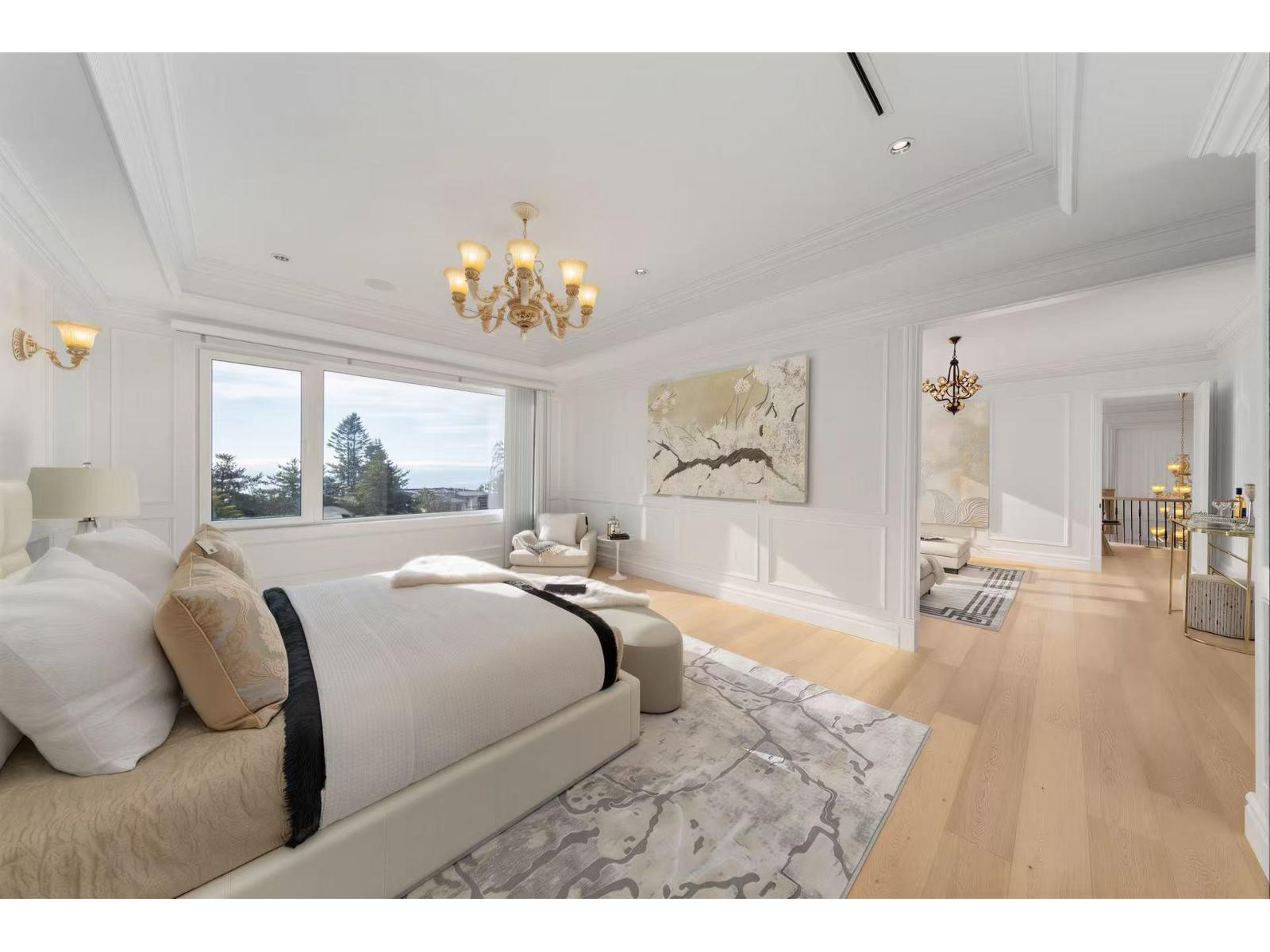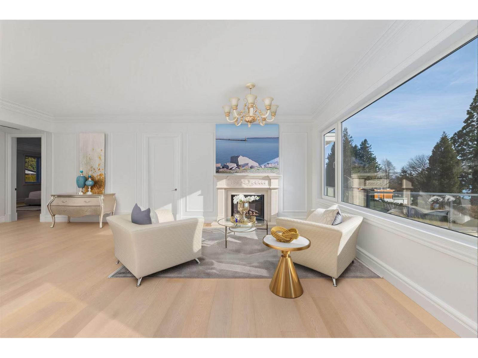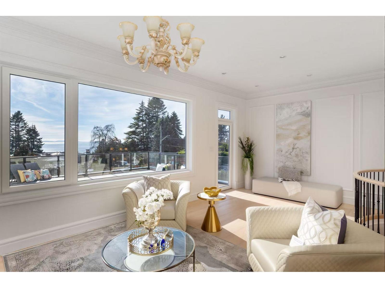 Exceptional custom-built 3-level ocean-view home in one of White Rock's most prestigious enclaves. Offering 7,000 sqft of refined living with ocean views from principal rooms on two levels. Main floor features open living and dining areas, gourmet chef's kitchen with premium appliances, separate wok kitchen, private office, and a main-floor primary/second master with patio access. Upper level offers three ensuited bdrm, including a primary suite with sitting area, two walk-in closets, and spa-inspired ensuite. Lower level includes a rec/media room, wet bar, gym, & guest bdrm. Expansive sun decks on main and upper levels total approx. 1,600 sqft (not included). Fully gated 13,939 sqft south-facing lot. Radiant heating, A/C, HRV, double garage, ample parking. Bayridge & Semiahmoo catchment. Open house Feb 14, 15 (Sat, Sun) 2 - 4 pm. (id:62931)