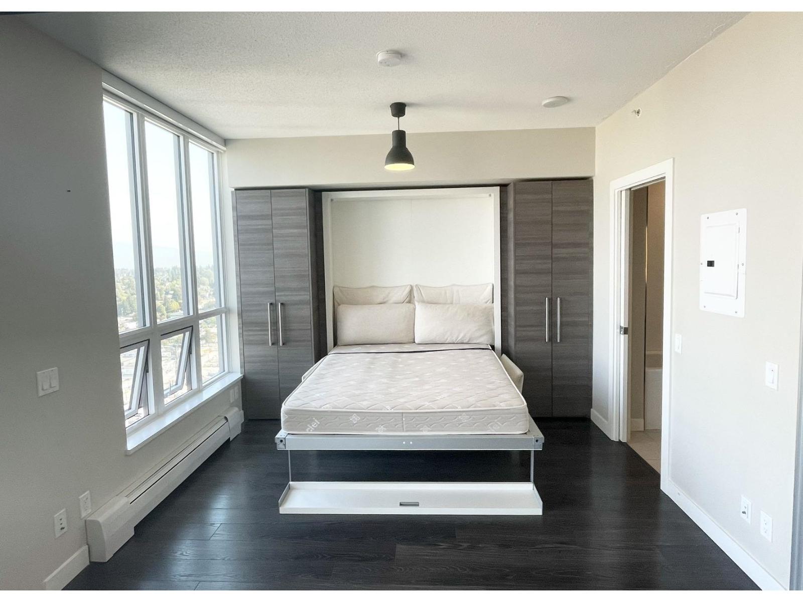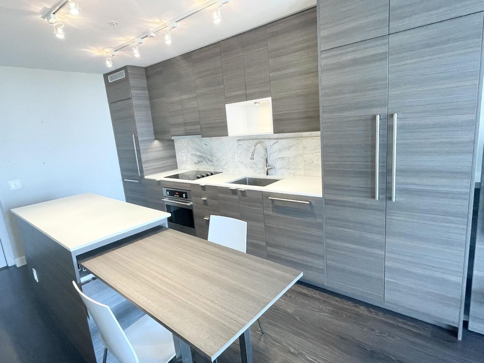 University District Alumni Tower (13398 104 Ave Surrey) was built by Bosa in 2016. This 35th floor 1-bed 1-bath Sub-penthouse has stunning 180 degree views of the city, mountains and water. Indoors 560 sqft, balcony 42 sqft, laminate wood flooring, quartzite countertops, stainless steel appliances, 1 parking and 1 locker included. The unit features a flexible floorplan with the integrated BOSA Space furniture system maximizing use of the available space. The expandable dining room table slides out of the kitchen island and has two different configurations. Amenities: gym, yoga studio, lounge and more. Rent: $1750, semi-furnished, electricity and internet are not included. No smoking and No pet. Minimum one-year lease. Credit check and reference required. It's available on 1st Apr. (id:62931)